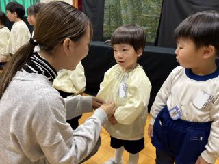 お地蔵様や鬼が出てくると怖くて泣いてしまう子もいましたが、どの子もとても真剣に見ていました。