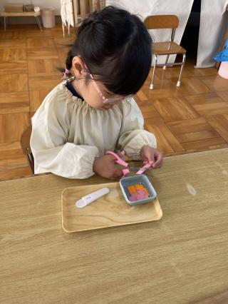 写真を通して子ども達の様子や教具を紹介します。
