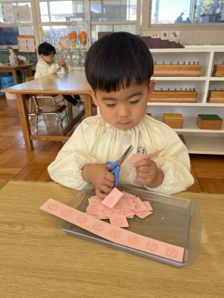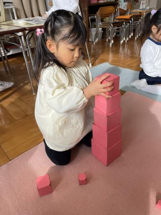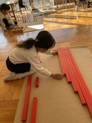 3学期が始まり3週間が経ちました。2学期の行事を終え、冬休みを経て自信がついた子ども達。お仕事の様子から子ども達の成長を感じることができ、嬉しく思います。1学期から継続している教具や、3学期から興味を持ち新しく始めた教具を、子ども一人ひとりが積極的に取り組む姿が見られます。見方を変えることで新しい発見をしたり、違う興味に繋がったり、成功や失敗の経験を通して心も豊かになっていきますね。