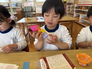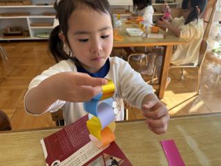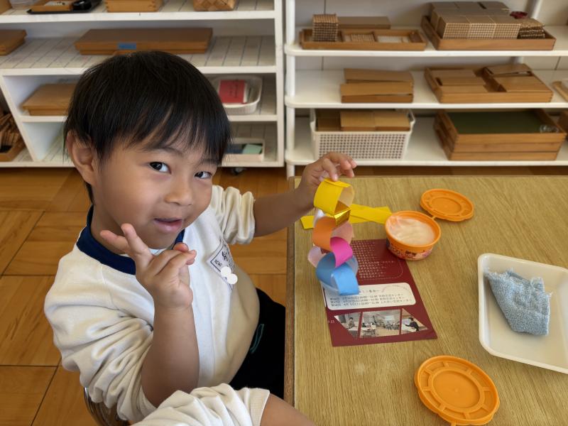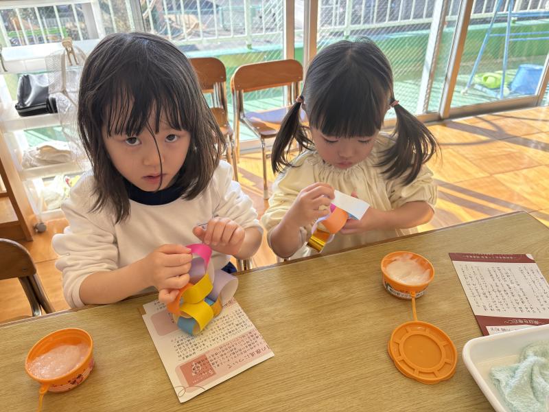 ホーム 1コマダイアリー ぞう組の様子♪ ぞう組の様子♪ 2026年02月27日 ぞう組の自由活動時間の様子をお伝えします! 寒い日はお部屋で過ごす子が多かったですが、最近は暖かくなってきたので外の活動も活発になってきました! 先日は3月のお別れパーティーに向けて、輪飾りづくりをしました。のりの使い方も丁度良く、Dさんもつなぎ方を理解していて上手に作ることができました。みんなで作ったものをつなげると、とっても長くなって嬉しそうな子ども達でした^^ ぞう組のみんなで過ごすのもあと少し。思い出たくさん作りましょうね♪