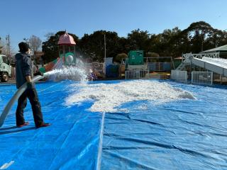 いつもより深いプールで、子どもたちは大はしゃぎ!