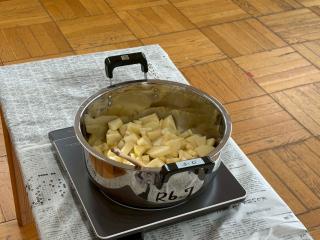 年長じゃがいもパーティー♪ じゃがいも柔らかくなーれ! 順番に切ります! 先生が炒めるよ! じゃがいもがどう変身するかな!? おいしくてもっと食べたいね。 みんなおかわりしていました! みんなで食べるとさらにおいしいね! まだまだあるよー、おかわりどうぞ! おかわりの列ができてます。 たくさん食べてね!