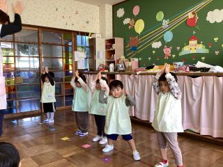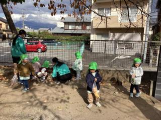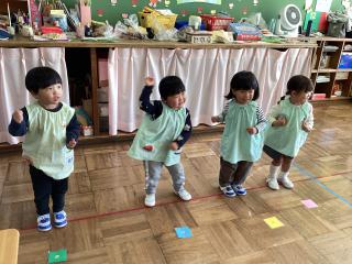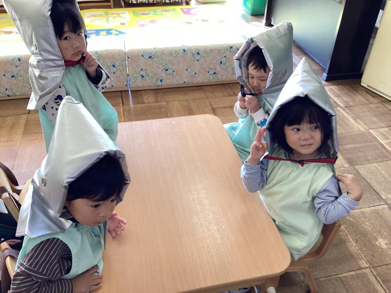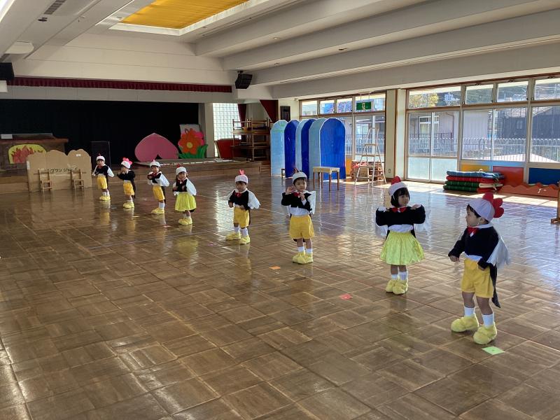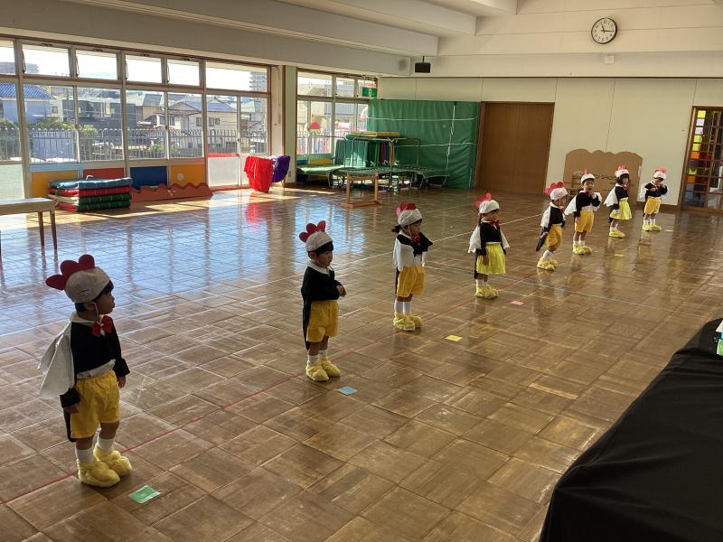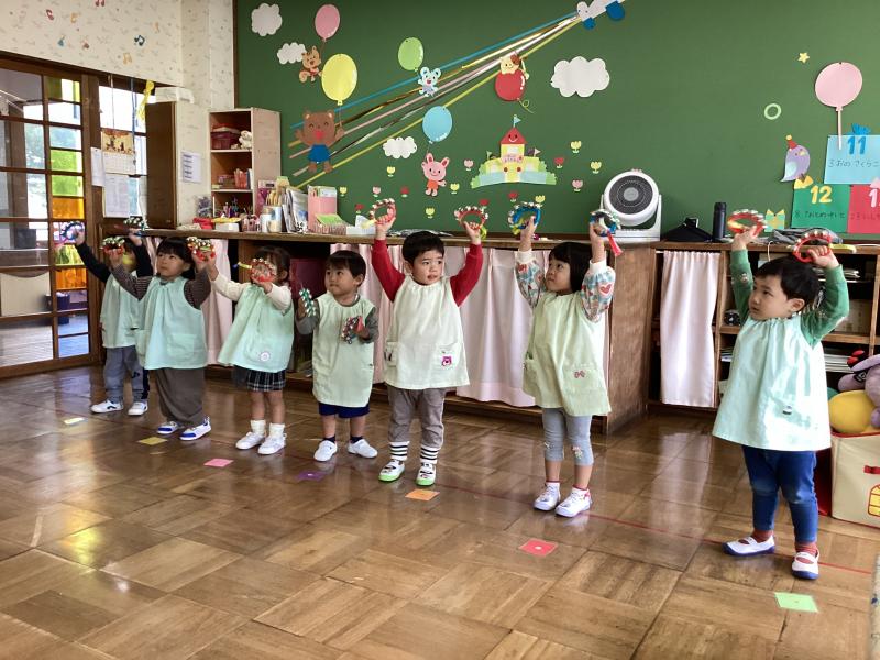 シール遊びでは、どれを選ぼうか、どこに貼ろうか自分で考えます(*^-^*) 避難訓練で防災頭巾をかぶって消防士さんに変身です。 トサカが似合うぜ・・・ コケッコー♬ おしりフリフリ・・(^^♪ コケッコーの衣装でニワトリさんに変身です♡ かわいい8名のニワトリさんです♪ 大型積み木で作るものが上手になってきました! 霊山寺の境内へ落ち葉やドングリ拾いに来ました(*^-^*) 色付いた葉っぱやドングリをたくさん見つけたね♪ 小さな世界の鈴も上手に出来るようになりました! 大根さーん!もっと大きくなってねー!! 大きくなる大根さんのようにひよこ組のみんなも大きく成長しようね♡