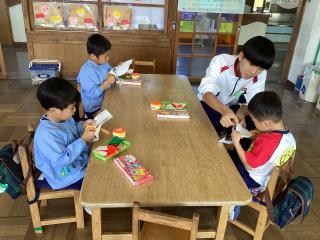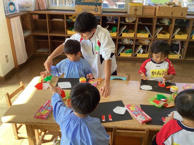 沼津工業高校のお兄さんが来てくれました!一緒にサンタクロースを作ったよ♪