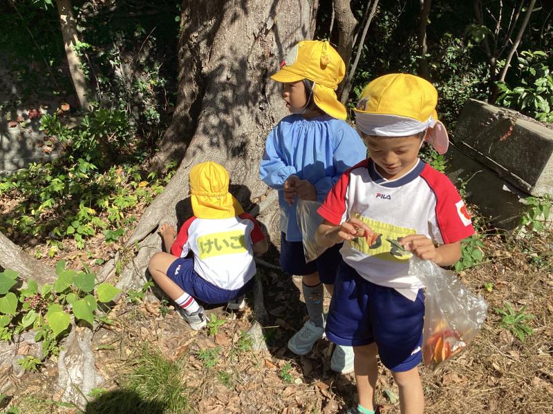 様々な場面で紅葉した落ち葉やドングリなどの木の実を見つけることができました(*^-^*)