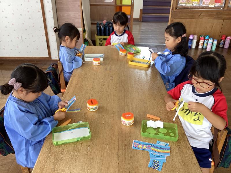 切り紙のおしごとでは、雲と雲をつなぐ橋を沢山切り、迷路を作ることができました☆