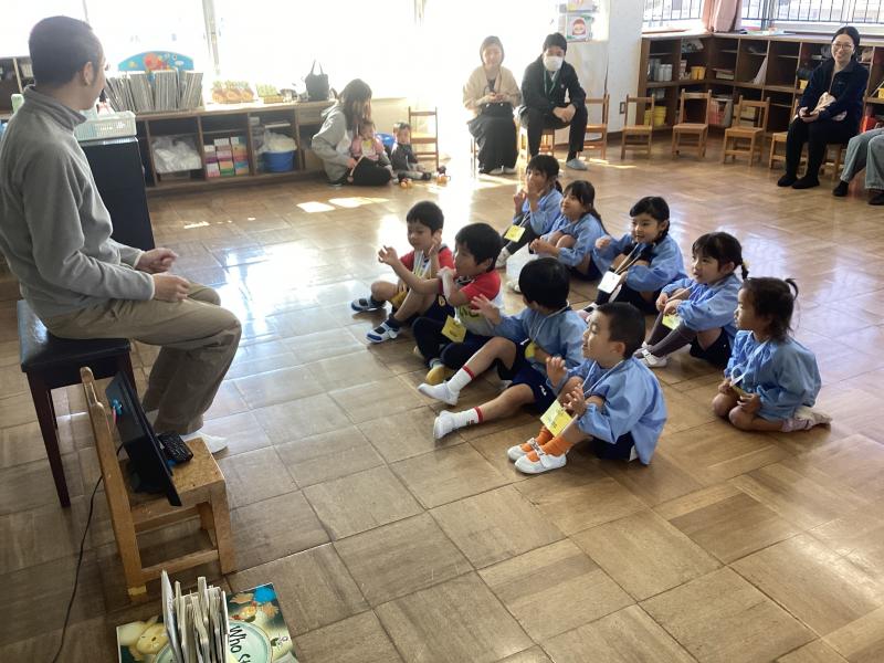 お家の人たちに、英語参観に来てもらいました!楽しくジョージ先生と英語で話す姿を見てもらう事ができました♪