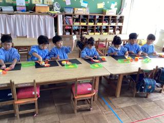 角と角を合わせて折るのも上手になったね(*^-^*)