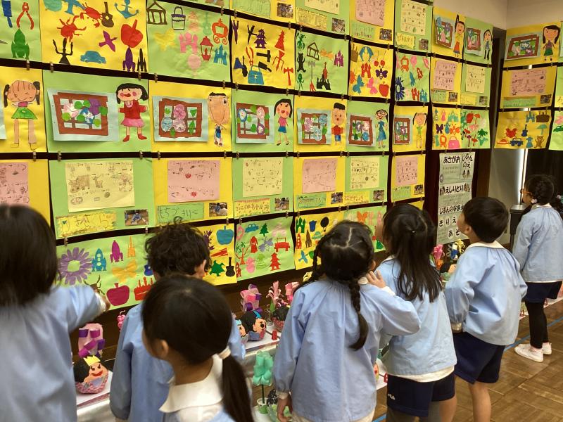 「あったー」自分の作品を探したり、他の学年の作品をじっくり見ました。