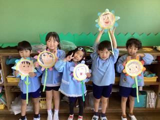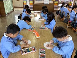 丸い紙に顔を描いています!何を作っているのかな?