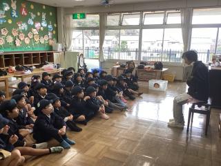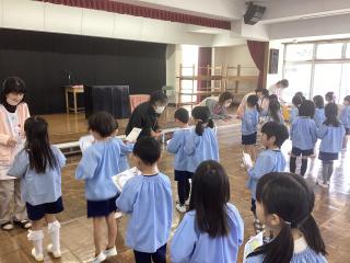 園長先生が読み聞かせをしてくれました。「おおきくなるってことは」「私と小鳥と鈴と」素敵な絵本でした。