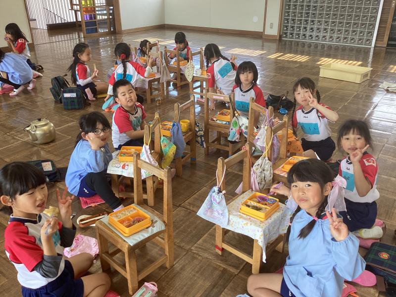 くま組と一緒におゆうぎ室でお弁当を食べたよ♡みんなで食べれてわくわくしてたぞう組さんでした(^^)/