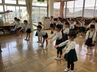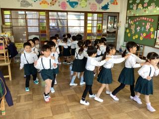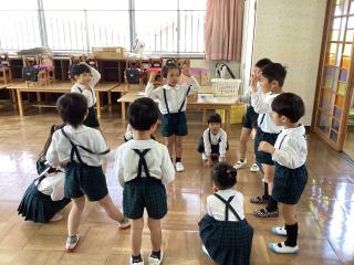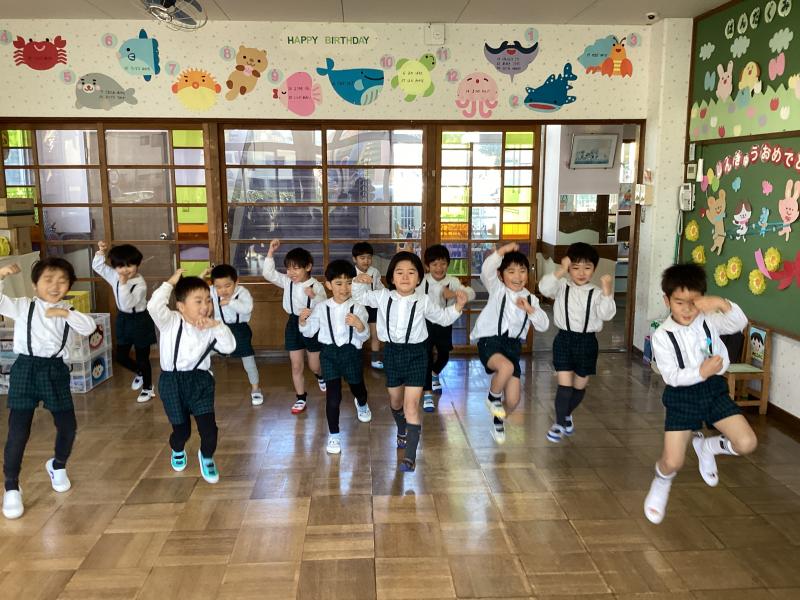 •  おたのしみ会です!「やんちゃ怪獣」のふりつけもバッチリ覚えていたね☆