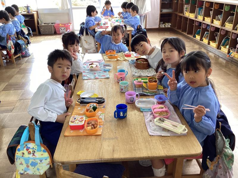 •  今日はお家の人が作ってくれた愛情弁当の日です。おいしいね(^_-)-☆