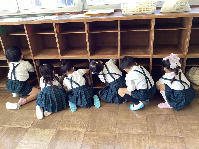 •  一年間使ったロッカーの大掃除です。雑巾でピカピカにふいたよ。