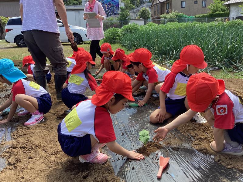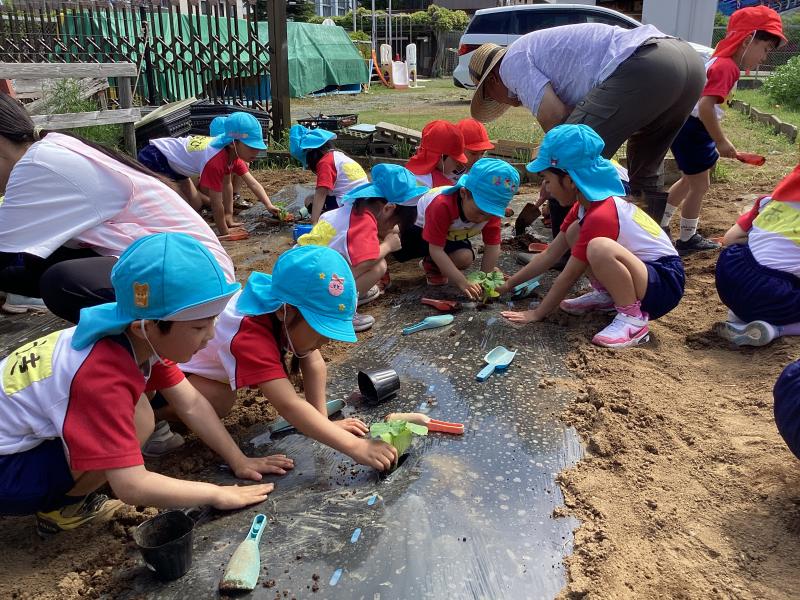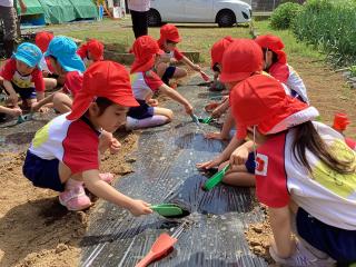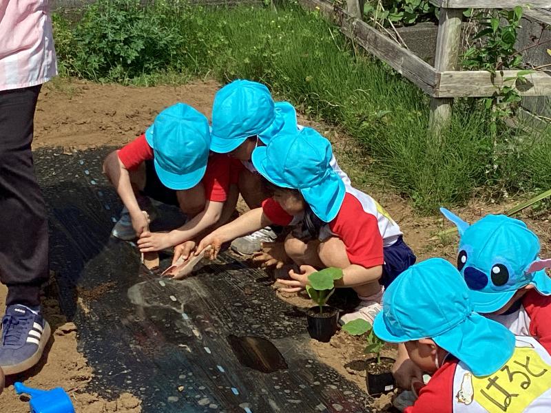 年長 かぼちゃの苗植え