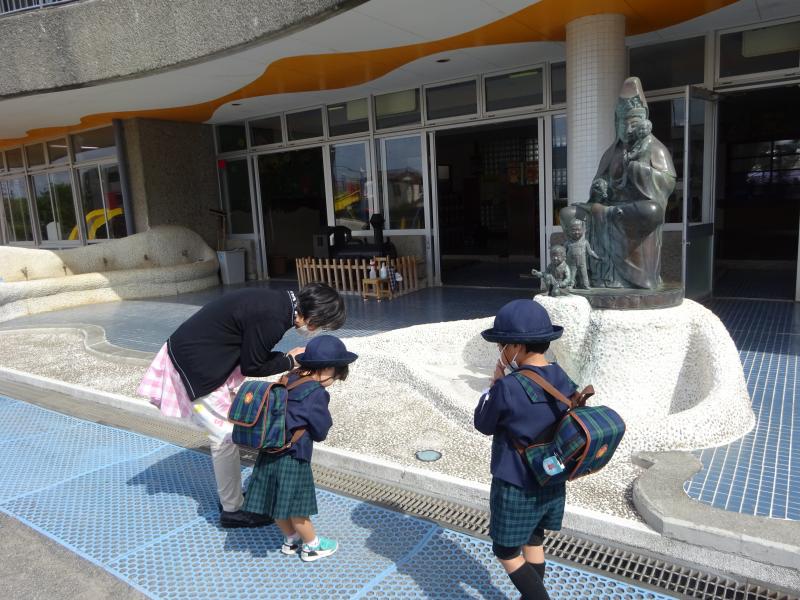 バスから降りたら、みんなで挨拶をします♡