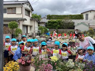年長さんは、お散歩で隣の「沼津農園」に行きました。たくさんの植物や花をじっくり見ることができました。隣のこんなに素晴らしいものがあってありがたいです。