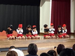 年長さんが22日におゆうぎ会を行うことになりました。おゆうぎ室のステージで動きを調整しながら練習に取り組んでいます。2つの劇、ベル、歌、お楽しみに!