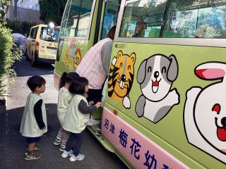 今日はおゆうぎ会のリハーサルの日です。始めにうさぎ組さんとひよこ組さんが文化センターに出発です。大バスに乗って行ってきます。ぱんだ組さん・きりん組さんはおゆうぎ室で練習した後、11時前に出かけます。みんな本番に向けてわくわくしています。