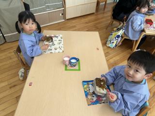 最近は”たのしいね”や”ともだち賛歌”、”さんぽ”、”豆まき”と友だちと共に歌う活動を楽しんでいます(*^^*)