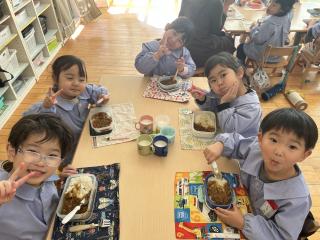 今日のカレーパーティーではPTAさんの愛情たっぷりのカレーをた~っぷり頂き、とっても嬉しそうな子どもたちでした♡