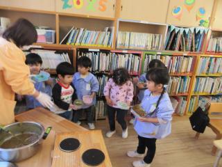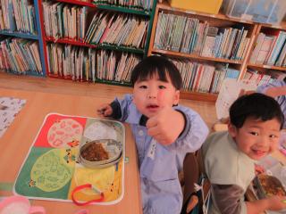 カレーパーティーでは普段野菜を食べない子も自ら「にんじん食べる!」「お肉食べる!」などと言っておかわりを沢山しました!なんと鍋2杯もおかわりして、うめ組さんで鍋3倍分も平らげてしまったんです!PTAさん、ありがとうございました☆彡