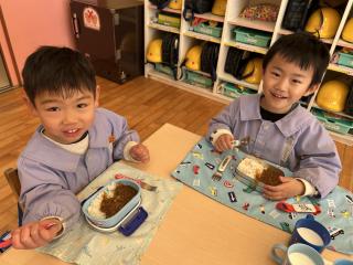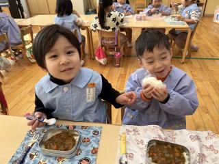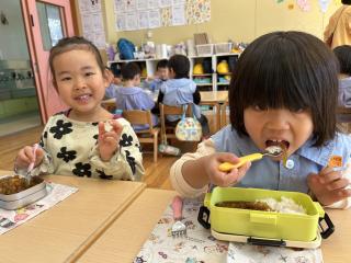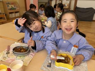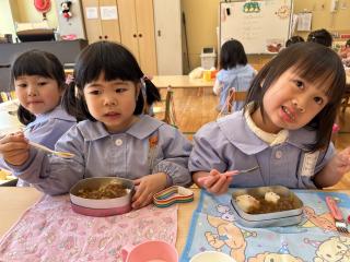 カレーパーティーでは「いつものカレーと違う!!」「おかわり~!」と口いっぱい美味しそうに食べる子どもたちの姿が♡