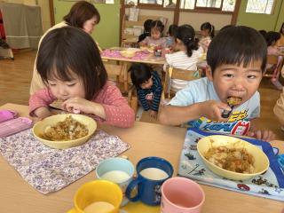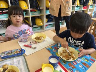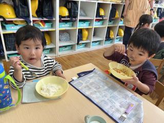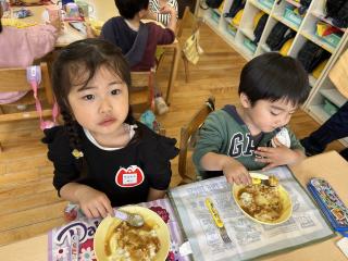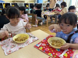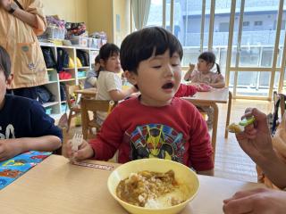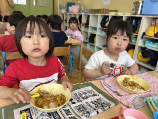 「早くカレー食べたい!」と食べる前から楽しみにしていた子ども達(*^^*)