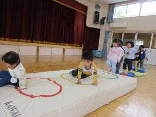 一番の人気はマット遊びでみんなしっかり靴を脱いで、壁に揃えて置いて順番に並んで遊んでいたんです☆