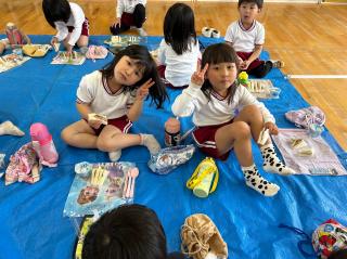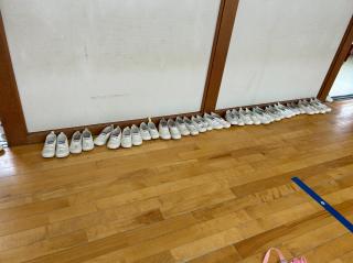 ブルーシートでパン給食を食べた日、何も言っていなくても上靴を揃えて置いてくれたみんな!!!