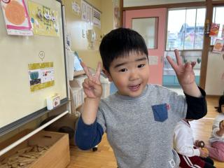 今は頑張る時間!や楽しむ時間!と切り替えも出来るようになってきて、帰りの会で明日の昭和の日について話をしたのですが、とっても真剣にお話を聞いてくれました♪おじいちゃんやおばあちゃんの時代に戦争があったことや戦争ってな~に?ととても興味を持って聞いてくれ、真剣な表情が印象的でした!