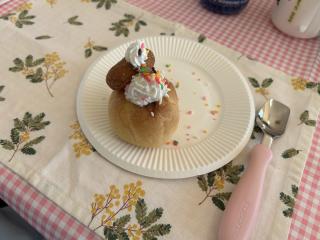 何が食べたいか皆で話し合い、一番人気だったアイスクリーム(シューアイス)に次いで人気だったドーナツ、ホイップクリームやカラフルチョコスプレーも好きなようにトッピングし、美味しくいただきました(*^^*)