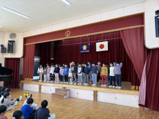 もも2組さんが【春よ来い】を、さくら1組さんが【線路はつづくよどこまでも】を、ふじ1組さんが【また会える日まで】を披露してくれました(^^♪素敵な発表でした!