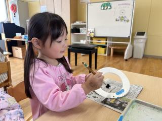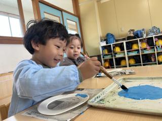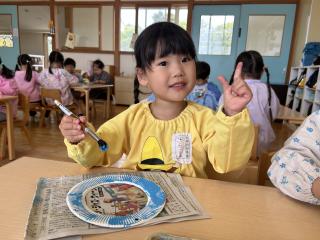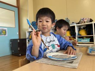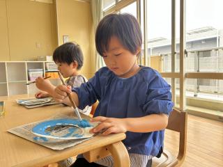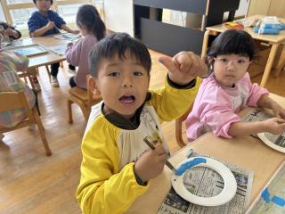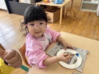 製作後は自分できれいに洗いました。その中でも「まだずっと色が出てくる~!」「ぴかぴか~!」と楽しみながら大切に扱う姿が見られ、嬉しくなりました(*^^*)