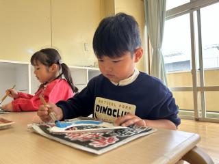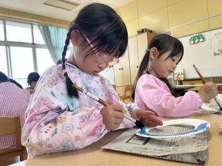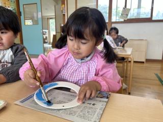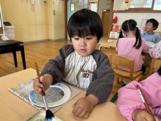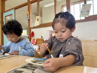 今日はこいのぼり製作の中で初めて個人持ちの太筆を使いました!