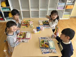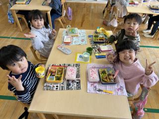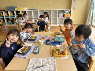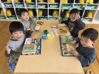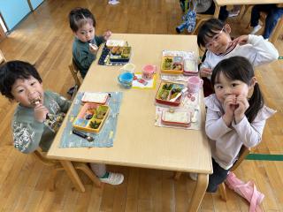 今年度初めての給食ではお箸にチャレンジしたり、「今日のデザートパイナップルだ~!」「箱が前と違うね!」なお友だちとの会話を楽しんだりしながら食べることが出来ました!