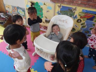 0,1,2,3,4歳児のお友達。できることも増え、言葉も表情も感情も豊かになりこれからの1年がまた楽しみです。1人1人を大切に、これからもかけがえのない時間をみんなで楽しく過ごしていけるようにしたいと思います。1年間よく頑張りました。