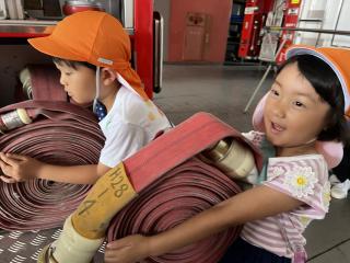 「火事はどこですか!」「消火完了です」と消火をしたりして遊んでいました。