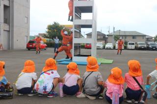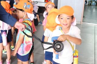 みんな、訓練中の消防士さんの姿に目がキラキラ輝いていました! -
