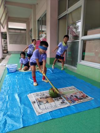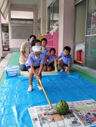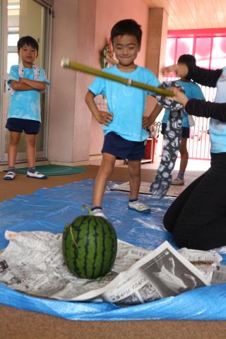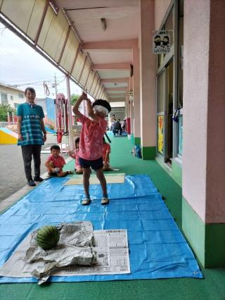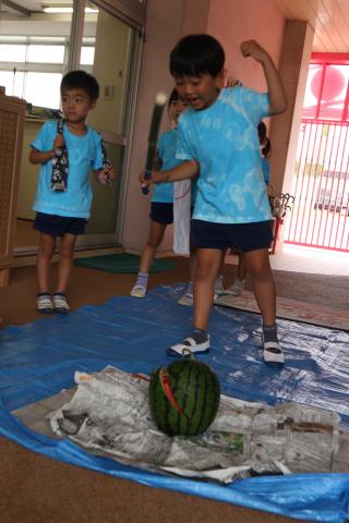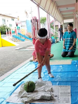 何度も何度もスイカに当たるまで挑戦したみたいです。