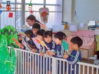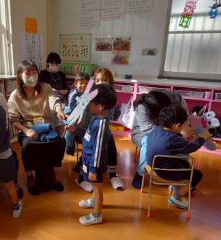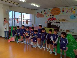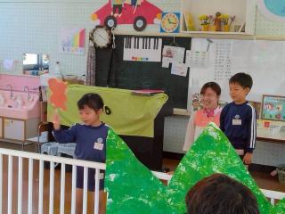 お客さんで見てくれたお家の人達に一生懸命作ったペープサートを紹介したね.