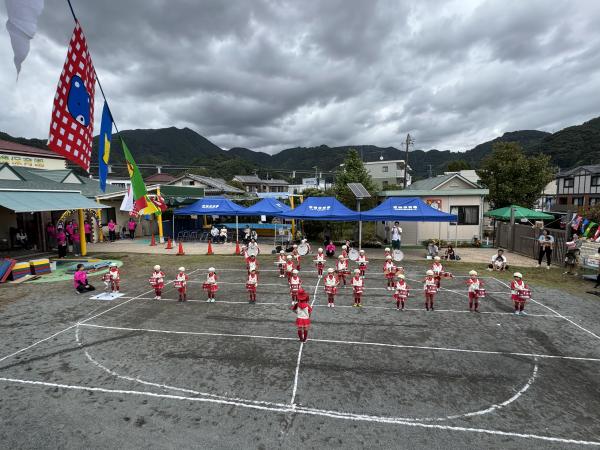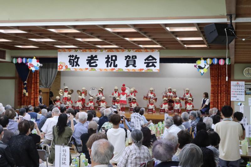 9/6(土)、コロナ禍も終え、久々に麻機地区の敬老会が行われるとの事で麻機保育園の年長年中の子どもたちが敬老会で出し物の披露をしてきました。内容は運動会で披露している鼓隊のドリル演奏や歌踊りです。おじいちゃんおばあちゃんとても喜んでくれました。