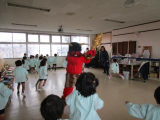 ホーム 2月2日 豆まき 2月2日 豆まき 2018年02月02日 今日は、富士保育園の豆まきでした。 昨日までの雨で園庭がぬかるんでいたので、2階のホールに集合して節分についてお話や、 豆まきの歌を歌って過ごし自分のお部屋に戻りました。 しばらくすると…太鼓の音が「ドン!!ドン!!ドン!!」と園内に鳴り響き始め、どこからともなく 強そうな赤鬼と青鬼が登場して各クラスにやってきました! みんなは必死に鬼に向かって持っている豆を投げつけて、やっと鬼は去っていきました。 子ども達の心の中の悪い鬼を退治することはできたかな? 先生達による豆まき 青鬼登場! 鬼は外!福は内!みんなで赤鬼めがけて豆をまきます 怖いけど、勇気を出して頑張って!