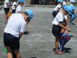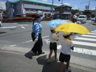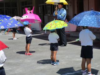 ホーム 交通教室・お散歩コース安全確認 交通教室・お散歩コース安全確認 2019年05月30日 交通指導員の方が保育園にきました。 各学年に分かれて道路の歩き方などの 話を聞きました。 つばめ組は傘のさし方を教えてもらいました。 交通指導員さんに指導してもらい 傘をさして横断歩道を渡りました。 正しい傘の閉じ方を教えてもらいました。 園長先生と主任保育士、リーダー保育士で、 楽しいお散歩になるように散歩コースを歩き 危険場所などを確認しました。 工事現場の出入り口などの危険場所を確認しました。