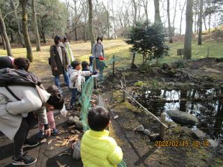 途中、どんぐりも落ちていて拾ったり、お魚のいる池のところで大きな鯉を