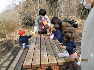 梅の花があちらこちらに咲き始めていて、みんなで梅を眺めながら