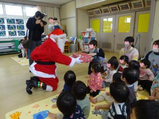 みんなの願いが通じたのか、今年も日吉町保育園にサンタさんが遊びに来てくれました♪