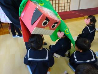 泣いていたお友だちも、獅子舞さんが副園長先生だとわかると、安心した笑顔が見られましたよ♡