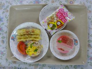 おたのしみのお給食は五目寿司のおにぎり!いつもと違う雰囲気にわくわくしながら、他クラスのお友だちとたのしく完食していましたよ♡